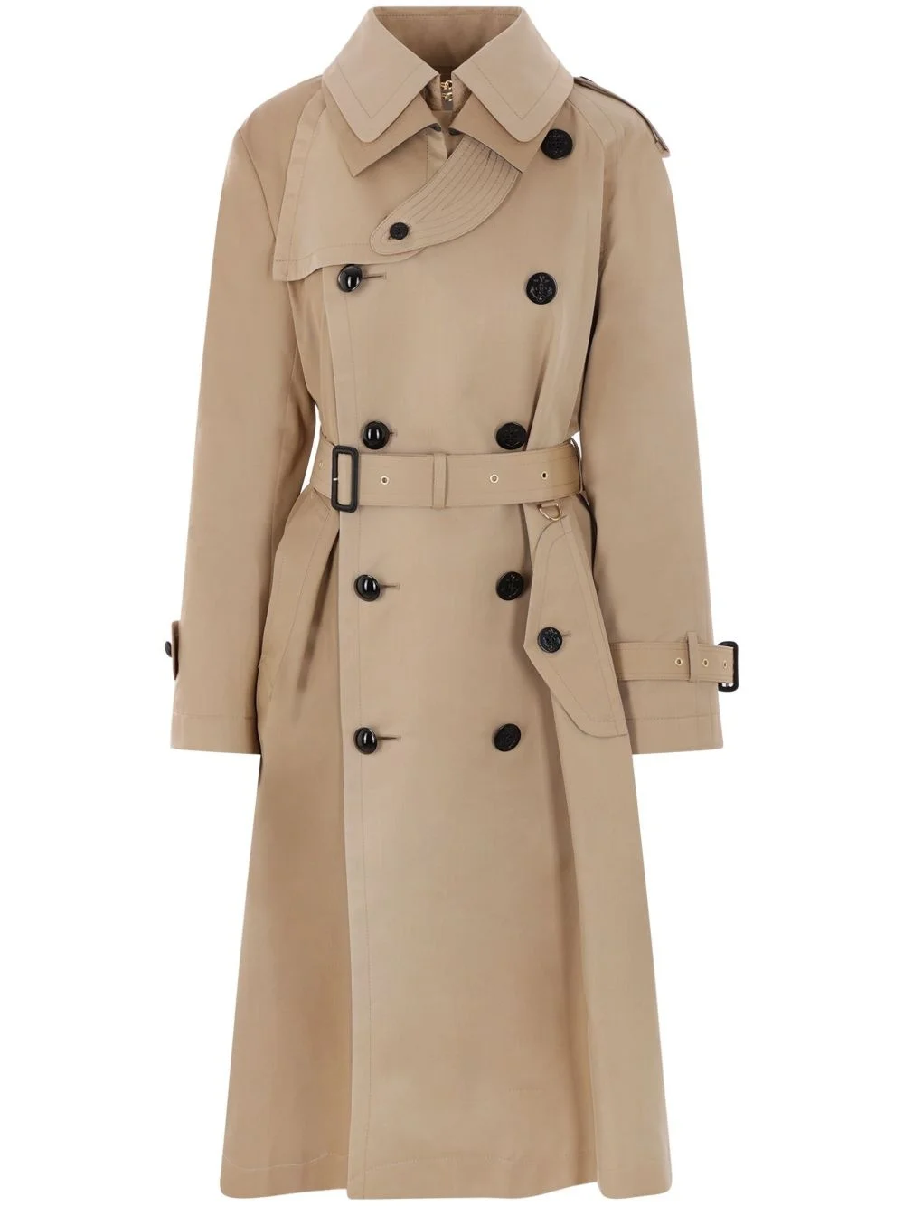 double-breasted twill trench coat Highlights - Beige - Double-breasted button fastening - Epaulettes - Detachable and adjustable waist belt - Central rear vent Imported Composition Cotton 63%, Polyester 37%