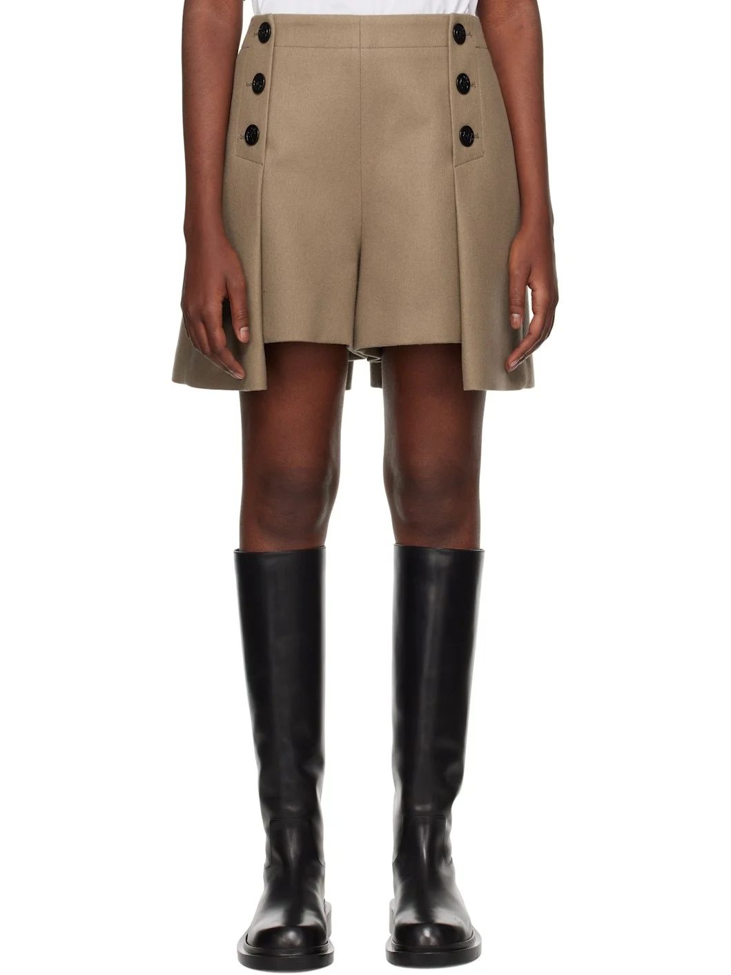Beige Wool Melton Shorts