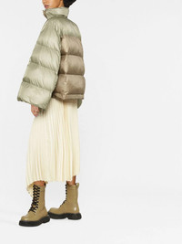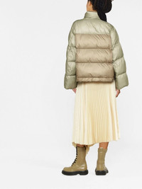 bell sleeves puffer jacket This two-tone puffer jacket seamlessly embodies sacai's penchant for statement silhouettes. Benefiting from a padded design, this khaki-hued piece boasts long bell sleeves that add an avant-garde feel to the design. Imported Composition Outer: Nylon 100%, Polyester 100% Lining: Nylon 100% SIZE & FIT Model measurements Height 5 ft 10 in(1.78 m) Bust/Chest 30.31 in(77 cm) Hips 36.61 in(93 cm) Waist 24.8 in(63 cm) FittingInformation This piece fits true to size. We recommend you get your regular size Cut for a loose fit Made with a mid-weight non-stretch fabric Washing instructions Dry Clean Only