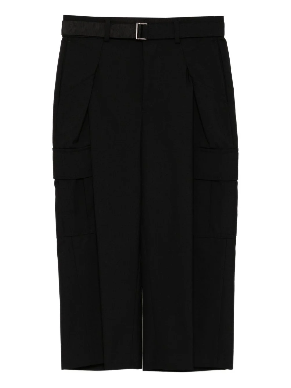 belted cargo trousers Highlights - Black - Two side cargo pockets - Two side inset pockets - Two rear flap pockets - Front zip fastening Imported Composition Outer: Polyester 70%, Wool 30% Lining: Cupro 100% SIZE & FIT Model measurements Height 5 ft 10 in(1.77 m) Bust/Chest 30.31 in(77 cm) Hips 34.25 in(87 cm) Waist 25.19 in(64 cm) FittingInformation Designed for a straight-leg fit, these trousers allow for a close fit at the waist and an unrestricted, comfortable fit over the leg The belt offers adjustability for fitted preferences Made from a midweight non-stretch fabric Washing instructions Dry Clean Only