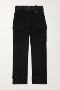 Sacai belted cotton-blend broderie anglaise straight-leg pants