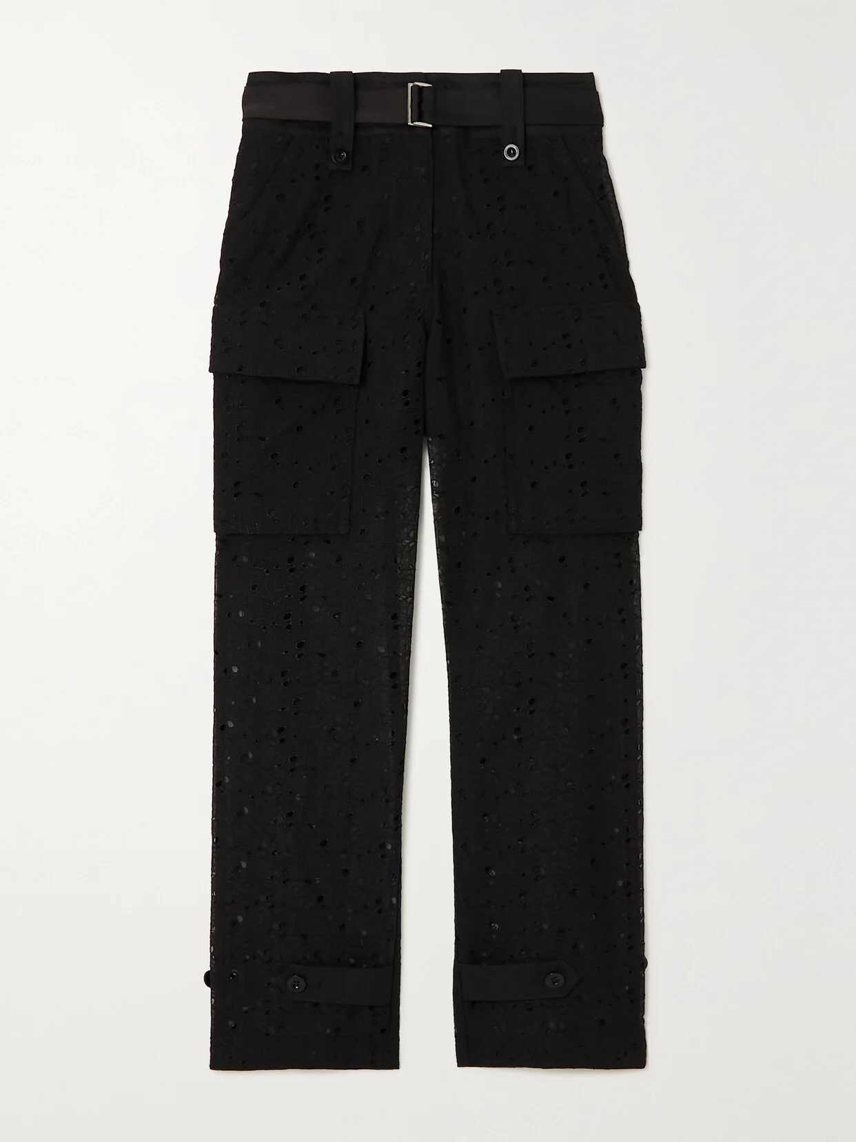 Sacai Belted Cotton-blend Broderie Anglaise Straight-leg Pants