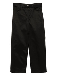 belted trousers Highlights - Black - Front button and zip fastening - Two side seam pockets - Two rear welt pockets Imported Composition Cotton 100% SIZE & FIT Model measurements Height 5 ft 10 in(1.77 m) Bust/Chest 30.31 in(77 cm) Hips 36.22 in(92 cm) Waist 24.8 in(63 cm) FittingInformation Designed for a relaxed tapered cut, these trousers allow for a close fit at the waist and offer a loose fit at the thighs, with a closer fit toward the ankles The belt offers adjustability for fitted preferences Made from a midweight non-stretch fabric Washing instructions Dry Clean Only