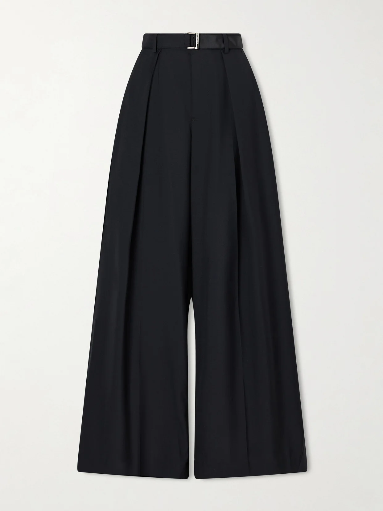 Belted Pleated Crepe Wide-leg Pants