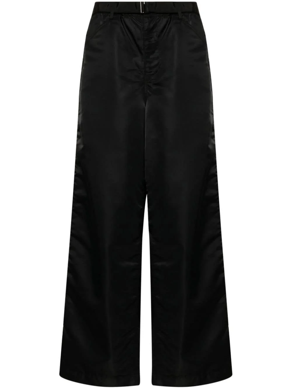 belted wide-leg trousers Highlights - Black - Wide leg - Belt loops - Detachable belt - Two diagonal pockets to the sides - Two rear flap pockets - Front button and zip fastening Imported Composition Outer: Nylon 100% Lining: Cupro 100% SIZE & FIT Model measurements Height 5 ft 9 in(1.75 m) Bust/Chest 31.88 in(81 cm) Hips 34.64 in(88 cm) Waist 24.01 in(61 cm) FittingInformation Designed with a wide-leg cut, these trousers allow for a close fit at the waist and offer a loose and roomy fit over the leg The elasticated waist allows for a comfortable fit Made from a midweight non-stretch fabric This piece fits true to size – take your usual size Washing instructions Dry Clean Only