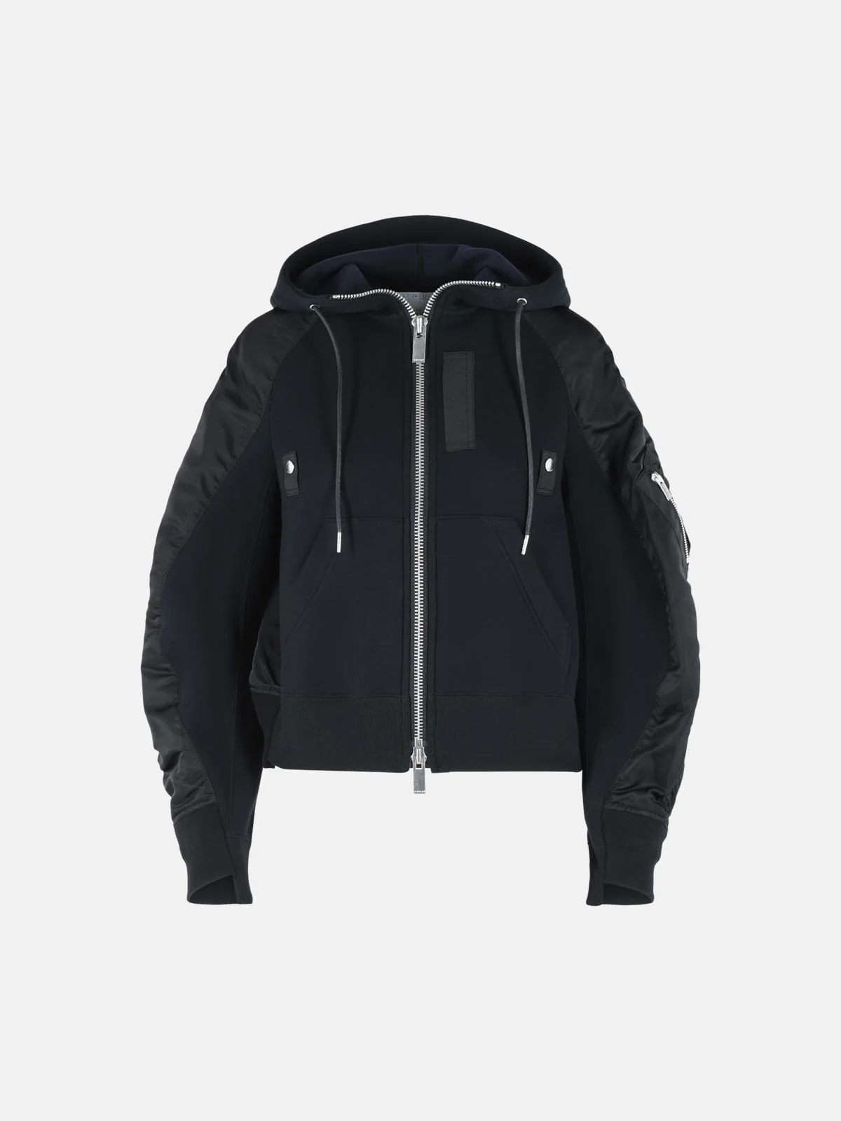 Manufacture code: 26-08343 001 Retail code: 26-08343 001 Drawstring hood, zip closure, grosgrain decorations, pouch pocket, zip pocket on the sleeve, ribbed hem and cuffs Main: 62% cotton, 38% polyester Made in Japan