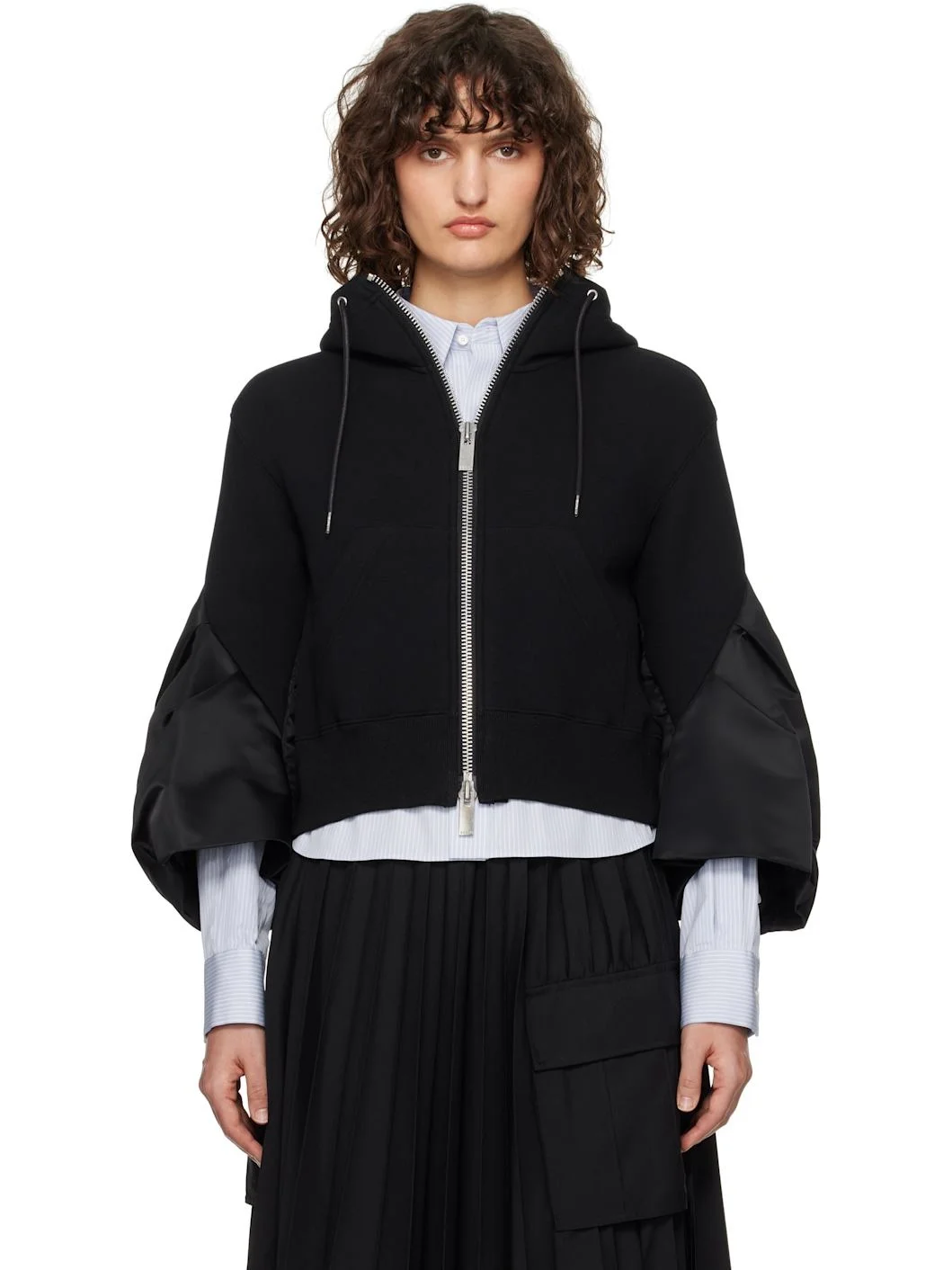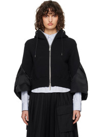 Paneled cotton-blend jersey and nylon satin hoodie. - Drawstring at hood - Two-way zip closure - Patch pockets - Rib-knit cropped hem - Darts and draping at cuffs - Logo-engraved silver-tone hardware Supplier color: Black