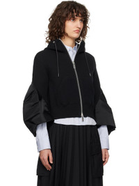 Black Sponge Sweat & Nylon Twill Hoodie
