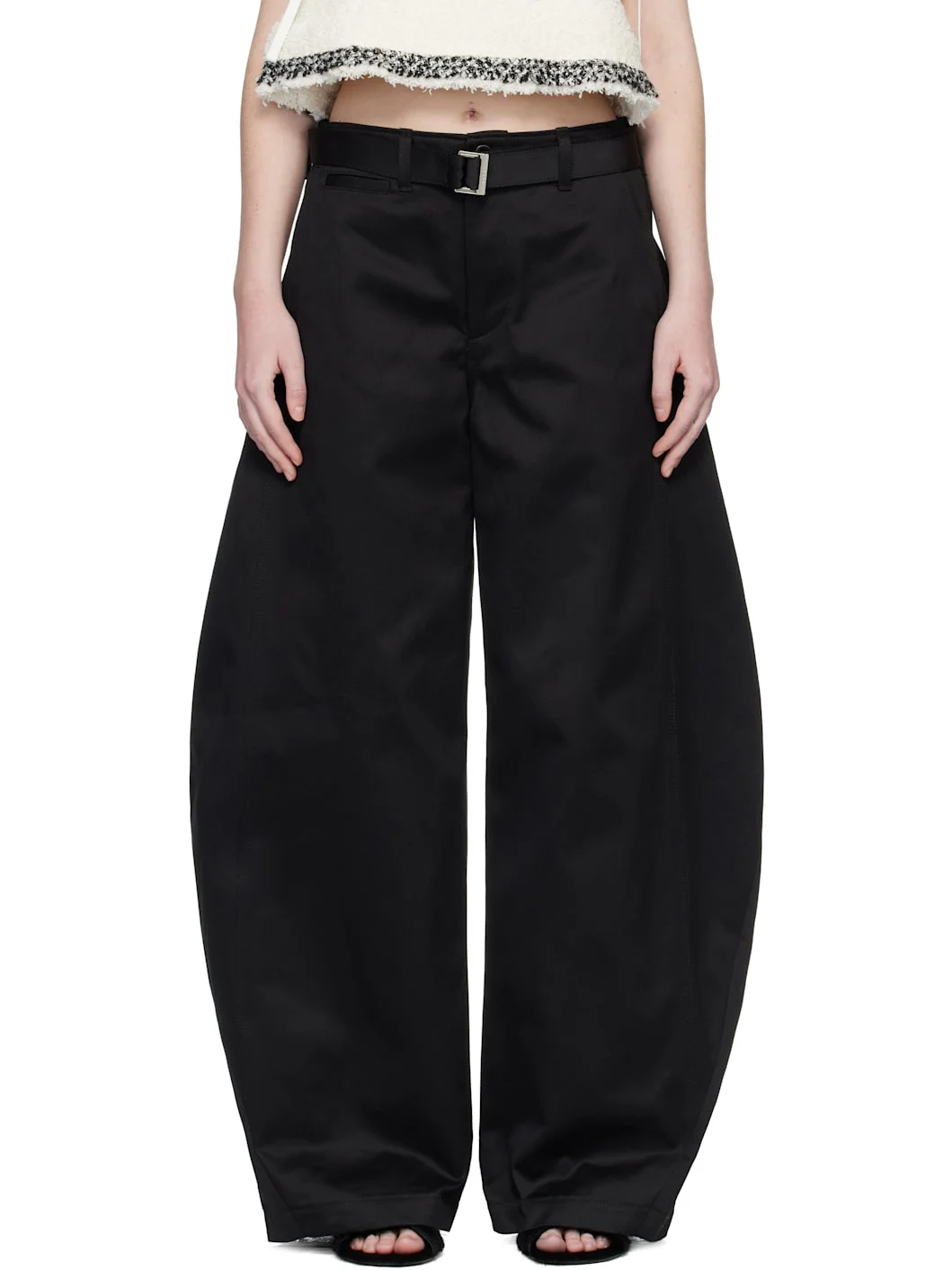 Cotton twill trousers. · Belt loops · Detachable cinch belt at waist · Five-pocket styling · Zip fly Supplier color: Black 100% cotton. Made in Japan 261445F087005