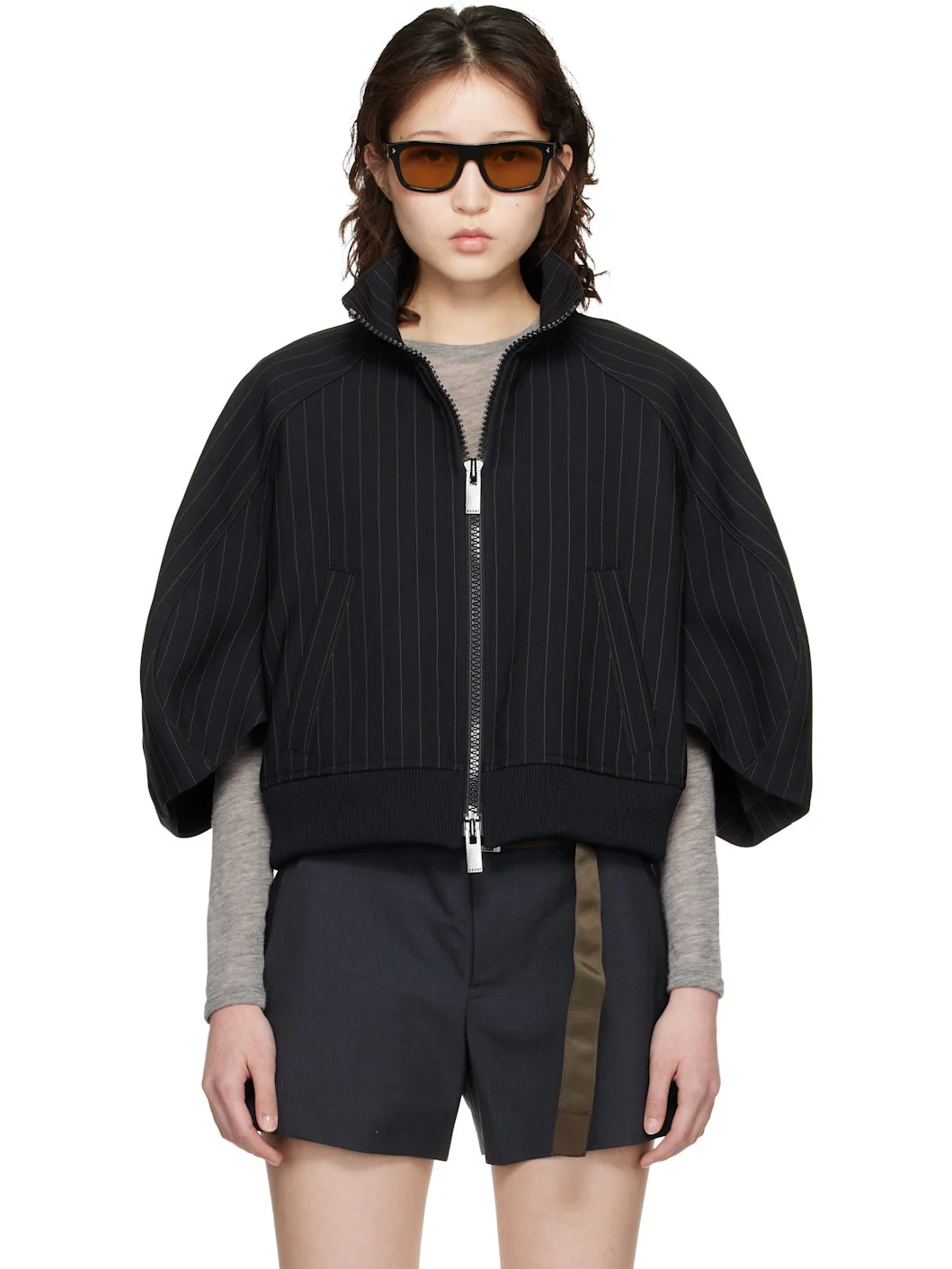 Twill bomber jacket. · Pinstripes throughout · Stand collar · Zip closure · Welt pockets at waist · Rib-knit hem · Raglan sleeves · Fully lined Supplier color: Black stripe Body: 99% polyester, 1% rayon. Lining: 100% polyester. Made in Japan 261445F058002