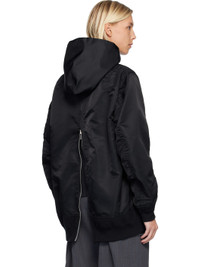 Nylon twill hoodie. · Drawstring at hood · Press-stud tabs at chest · Welt pockets at waist · Rib-knit hem and cuffs · Utility pocket and pen slots at sleeve · Zip vent at back · Full satin lining Supplier color: Black Body: 100% nylon. Trim: 55% polyester, 44% cotton, 1% polyurethane. Lining: 100% polyester. Made in Japan 252445F097012