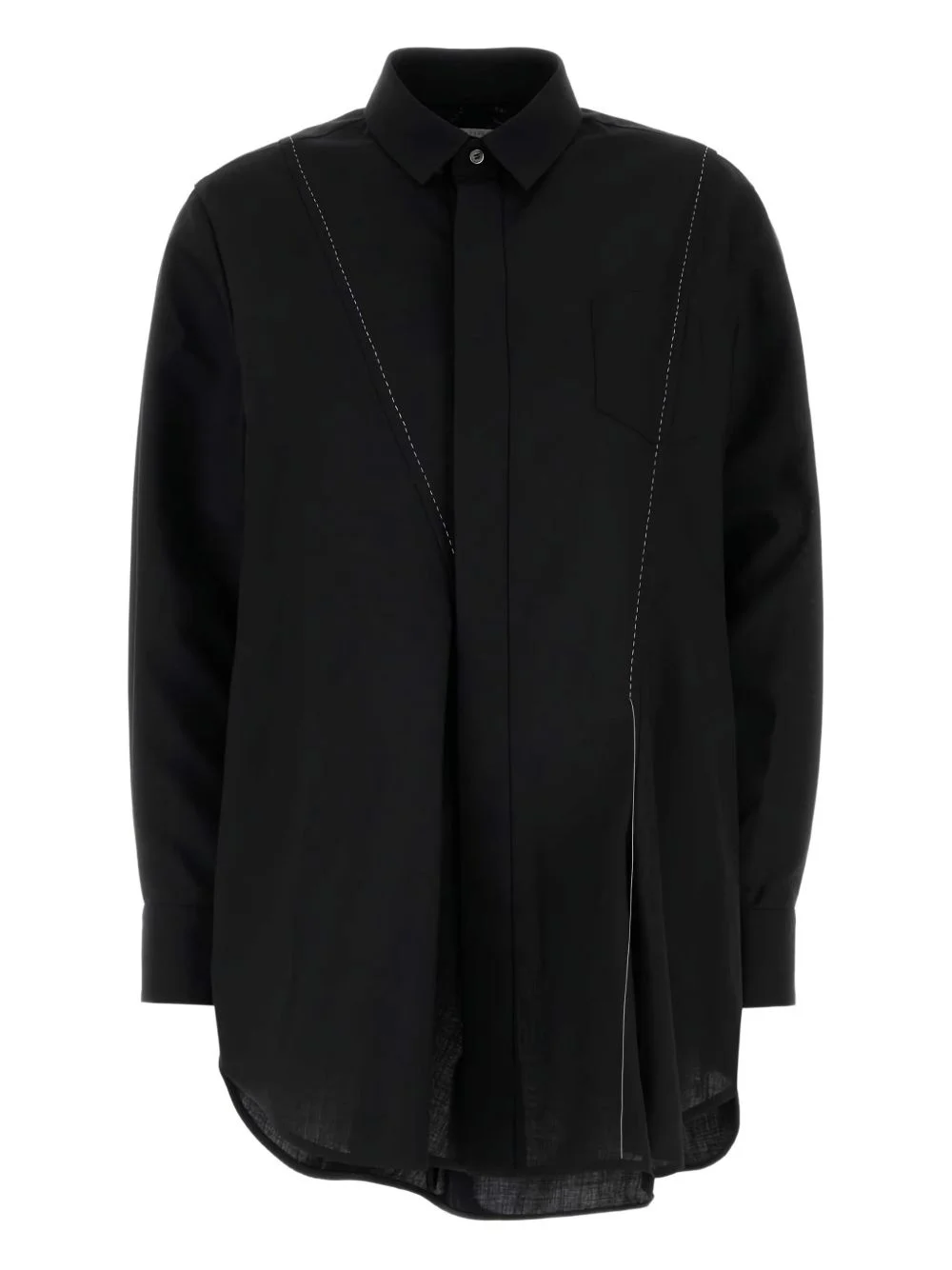 contrast-stitch shirt Highlights - Black - Polyester wool blend - Contrast stitching - Button fastening - Long sleeves - Curved hemline Imported Composition Polyester 70%, Wool 30% Washing instructions Read Manufacturer Guidelines