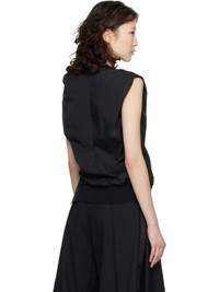 Cotton-blend poplin blouse. · Asymmetrical construction · Draping throughout · Cowl neck · Rib-knit hem · Vent at side seam · Cap sleeves · Full mesh lining Supplier color: Black Body: 65% polyester, 35% cotton. Trim: 50% cotton, 50% polyester. Lining: 100% polyester. Made in Japan 261445F107000