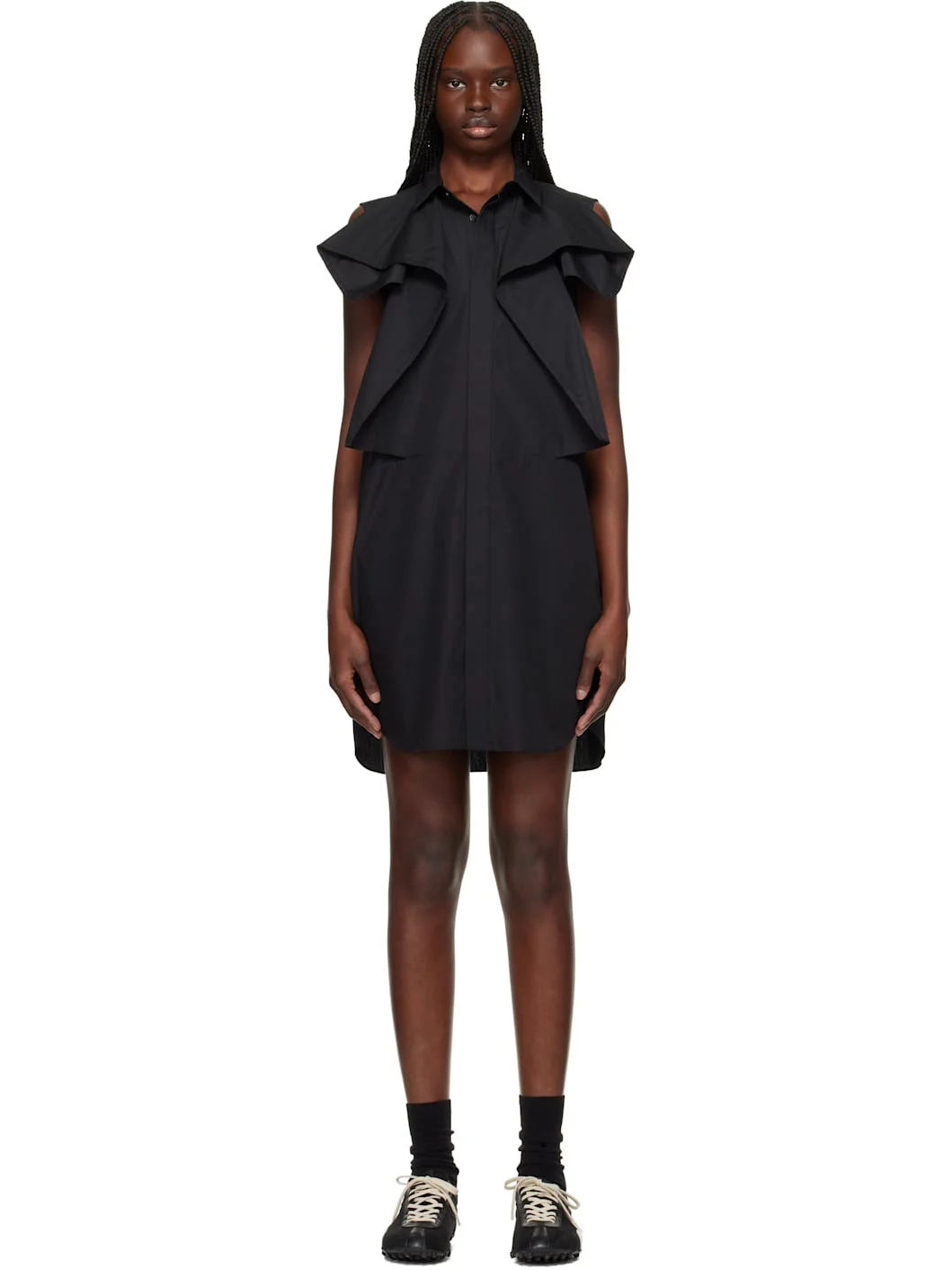 Cotton poplin minidress. · Spread collar · Concealed button closure · Layered panels at front · Seam pockets · Curved hem · Box pleat at back yoke Supplier color: Black 100% cotton. Made in Japan 251445F052024