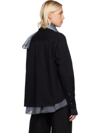 Non-stretch denim shirt. · Integrated scarf-style satin panel · Spread collar · Press-stud closure · Flap pockets at chest · Shirttail hem · Press-stud barrel cuffs · Partial mesh lining Supplier color: Black Body: 100% cotton. Trim: 100% polyester. Lining: 100% polyester. Made in Japan 252445F109011