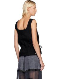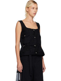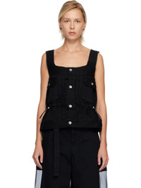 Non-stretch denim tank top. · Raw edges throughout · Square neck · Button closure · Flap pockets at front · Bungee-style drawstring at waist · Pleats at back yoke · Button tab at back hem Supplier color: Black 100% cotton. Made in Japan 252445F111001