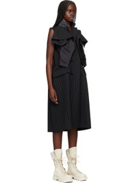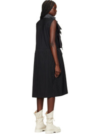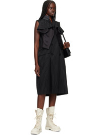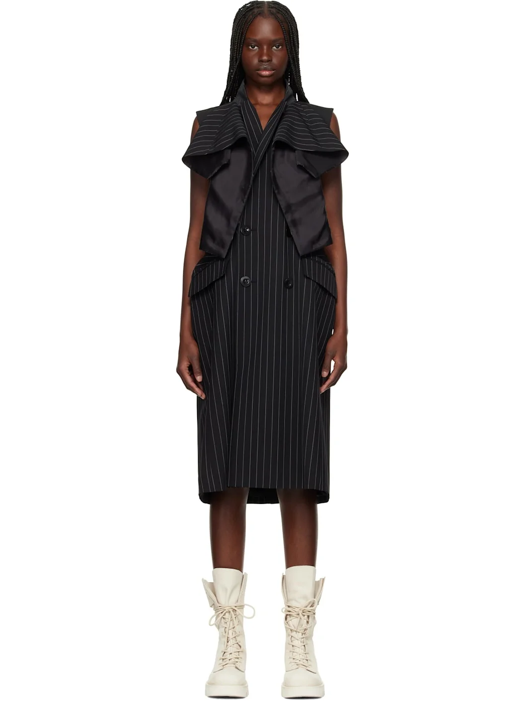 Plain-woven wool- and silk-blend midi dress. Stripes throughout. · Layered construction · Notched lapel · Double-breasted button closure · Layered panels at front · Flap pockets · Box pleat at back yoke · Central vent at back hem · Full cupro satin lining Supplier color: Black stripe Body: 72% wool, 28% silk. Trim: 70% polyester, 30% wool. Lining: 100% cupro. Made in Japan 251445F054004