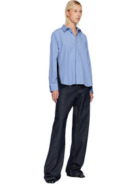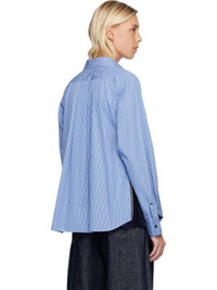 Cotton poplin shirt. · Striped throughout · Spread collar · Button closure · Patch pocket at chest · Shirttail hem · Zip expansion panel with pleated chiffon underlay at side seams · Pleats at buttoned barrel cuffs · Box pleat at back yoke Supplier color: Blue stripe Body 1: 100% cotton. Body 2: 100% polyester. Made in Japan 252445F109008
