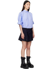 Cotton poplin and plain-woven wool-blend minidress. · Integrated top-and-skirt-style construction · Stripes throughout · Spread collar · Concealed button closure · Gathering at waist · Belt loops and detachable cinch belt at waist · Seam pockets · Zip vent at front hem · Buttoned barrel cuffs · Box pleat at back yoke · Welt pockets at back · Darts at back hem · Partial mesh lining Supplier color: L.blue stripe/Navy Body 1: 70% polyester, 30% wool. Body 2: 100% cotton. Trim: 100% cupro. Lining: 100% polyester. Made in Japan 252445F052004