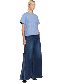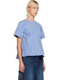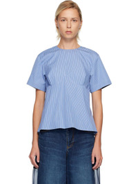 Cotton-blend poplin T-shirt. · Striped throughout · Round neck · Darts at chest · Peplum hem · Zip closure at back Supplier color: Blue stripe 100% cotton. Made in Japan 252445F110019