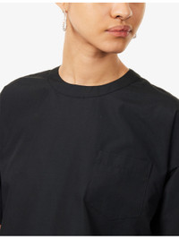 PRODUCT DETAILS - Sacai woven T-shirt - 65% polyester, 35% cotton - Zip fastening - Relaxed boxy fit, round neck, short sleeves, patch pocket at chest, cropped length, exposed branded zip at back - Machine wash cold - Made in Japan - True to size - Model is 5ft 10in/1.78m and wears a size small - Lightweight, non-stretch Ref: R04567728