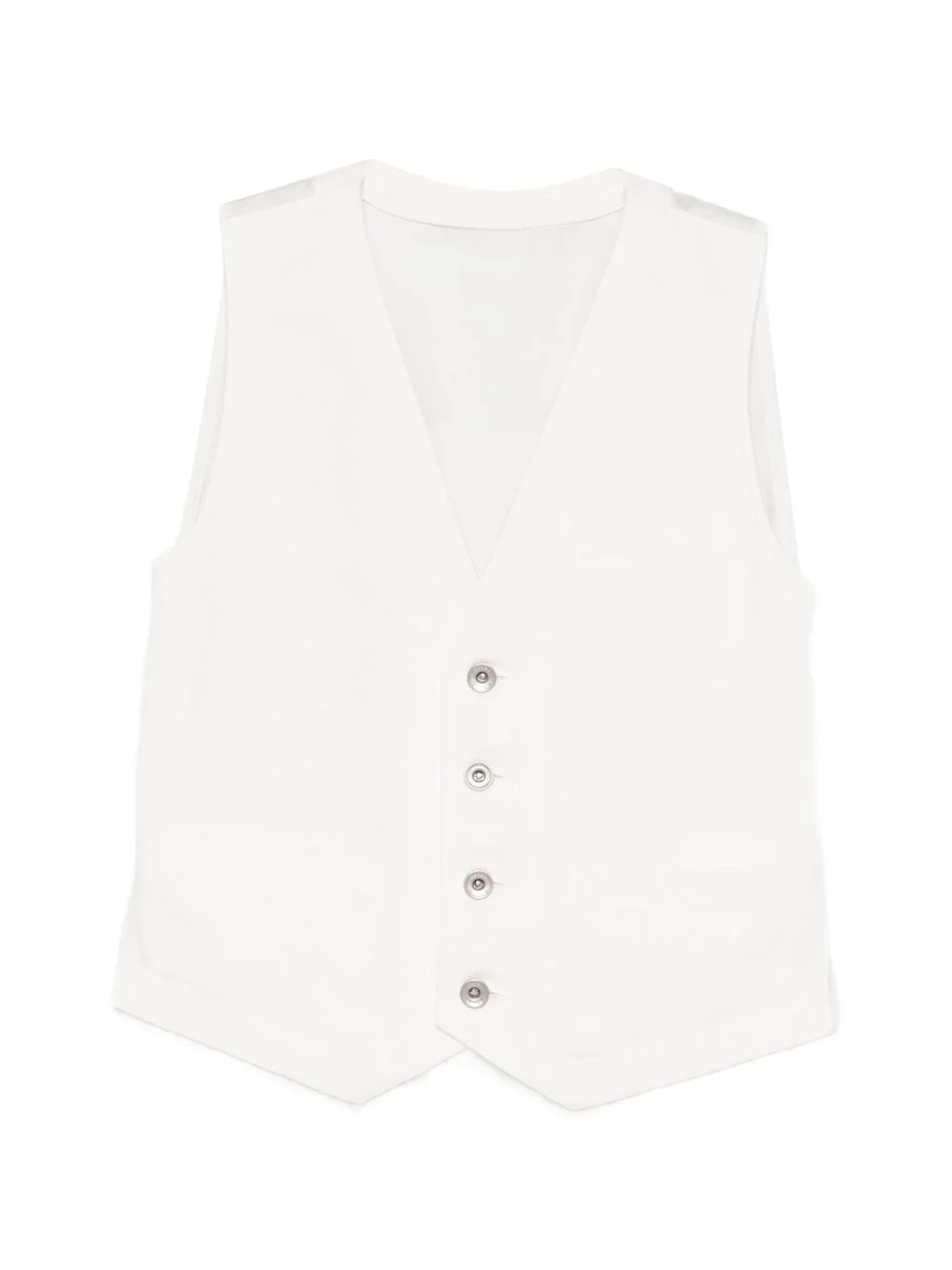 buttoned drawstring waistcoat Highlights - White - V-neck - Button fastening - Drawstring detail - Sleeveless Imported Composition Cotton 100% Washing instructions Read Manufacturer Guidelines