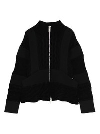 cable-knit zip-front cardigan Highlights - Black - Cable knit - Front zip fastening - High neck - Ribbed cuffs - Panelled design Imported Composition Wool 60%, Polyester 40% SIZE & FIT Model measurements Height 5 ft 9 in(1.76 m) Bust/Chest 31.49 in(80 cm) Hips 35.03 in(89 cm) Waist 24.8 in(63 cm) Washing instructions Read Manufacturer Guidelines