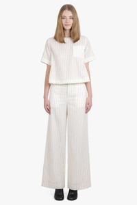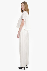 CONTRAST S/S PULLOVER STRIPE TOP | OFF WHITE/BLACK