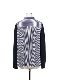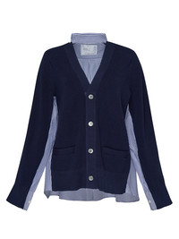 Wool Knit x Cotton Poplin Cardigan