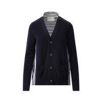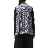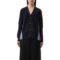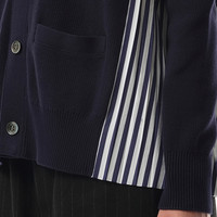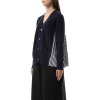 Cotton Knit x Cotton Poplin Cardigan in Navy