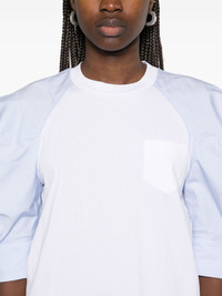 cotton poplin-detailed T-shirt Highlights - White - Chest patch pocket - Crew neck - Stripe detailing Imported Composition Cotton 100% SIZE & FIT Model measurements Height 5 ft 11 in(1.8 m) Bust/Chest 32.67 in(83 cm) Hips 36.22 in(92 cm) Waist 24.4 in(62 cm) FittingInformation Designed for a relaxed fit, this piece allows for comfort and movement when worn Made from a midweight fabric Washing instructions Dry Clean Only