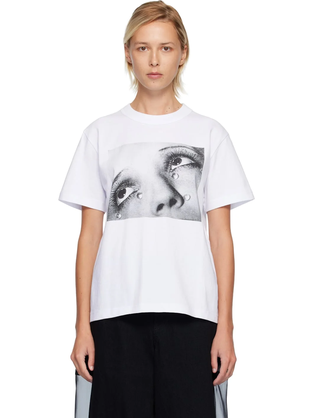 Cotton jersey T-shirt. · Rib-knit crewneck · Graphic printed at front · Dropped shoulders · Logo and text printed at back Part of the Man Ray capsule. Supplier color: White 100% cotton. Made in Japan 252445F110010