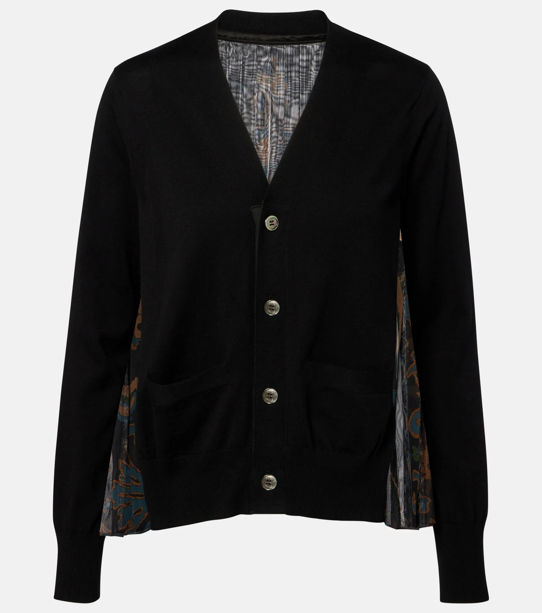 Sacai’s penchant for hybrid designs sees contrasting textures, fabrics, and techniques combined to create entirely unique styles. This cardigan features a knitted cotton front with buttoned closure and patch pockets, offset by floral-printed tulle panels at the sides and back. Product Details - Material: 100% cotton - Care instructions: dry clean - Made in China - Designer color name: Black X Navy - Item color: black, blue, multicolor - Material II: 100% polyester - Closure: buttoned placket - Collar: V-neck - Cuff: ribbed - Pockets: patch pockets - Hem: ribbed - Item number: P01066695 Size & Fit - True to size - Designed for a loose fit - Partly stretchy fabric - Falls to the hip - The model seen in the picture is 178cm-5'10" and wearing a size 1