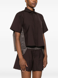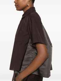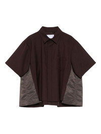 panelled short-sleeved shirt Highlights - Brown - Short sleeves - Concealed fastening - Front patch pocket - Contrasting panelling - Asymmetric hemline Imported Composition Cupro 100%, Polyester 70%, Wool 30% SIZE & FIT Model measurements Height 5 ft 11 in(1.8 m) Bust/Chest 31.49 in(80 cm) Hips 36.61 in(93 cm) Waist 24.4 in(62 cm) Washing instructions Dry Clean Only