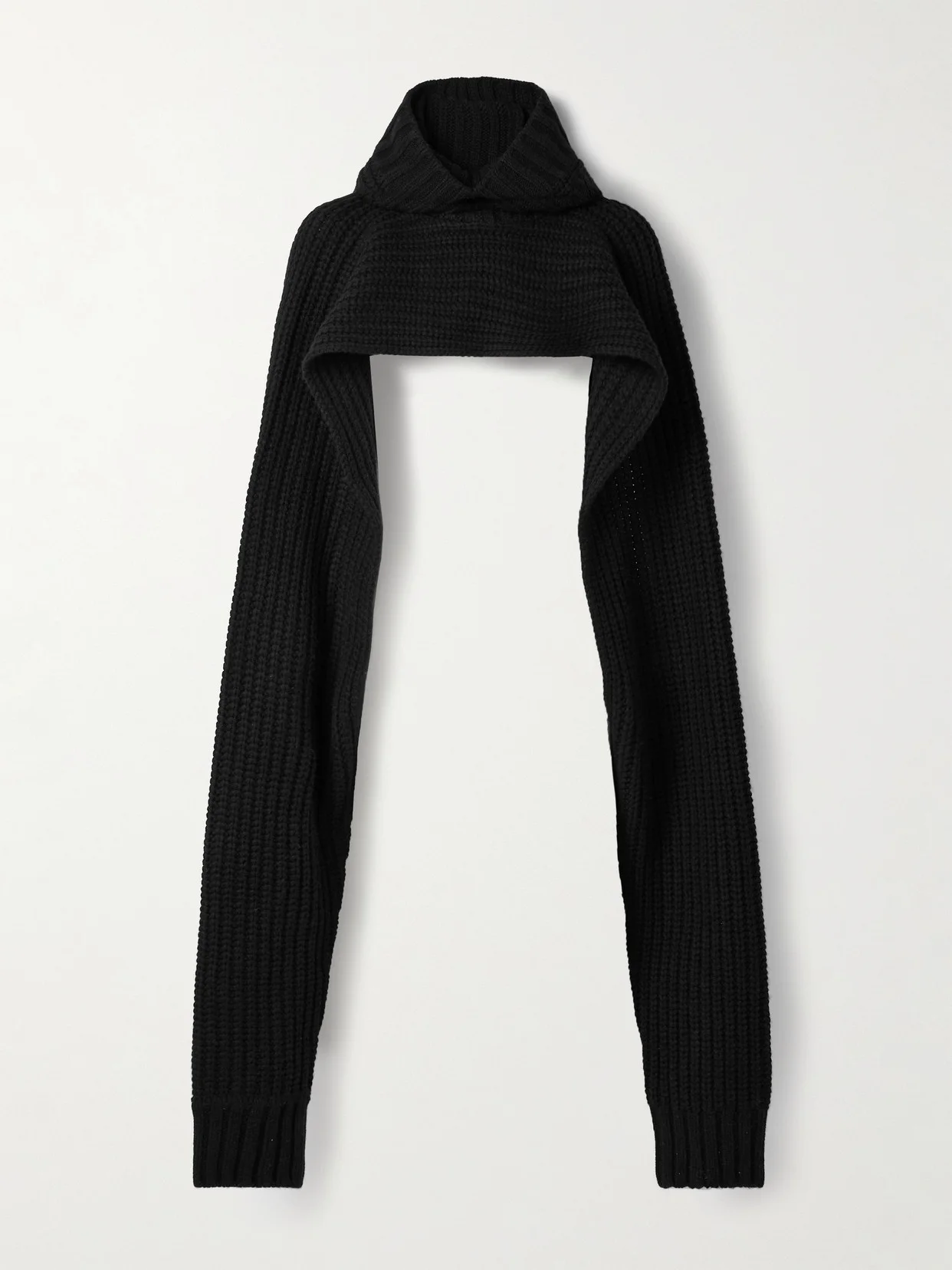 Sacai's sweater is the perfect layering piece for chilly offices or long-haul flights. Generously cropped, it's made from ribbed wool-blend and has elongated sleeves and a slouchy hood.