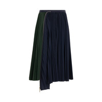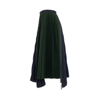 The navy blue and green colour combination creates a striking visual contrast that is both bold and playful. The pleated design adds texture and movement to the skirt, while the asymmetrical hemline adds a modern and edgy twist to the overall design. - Composition: 65% Polyester, 35% Cotton - Lining: 100% - Two-tone colourway skirt - Technical zipper skirt - Pleat design - Light weight SKU: SCW086 201