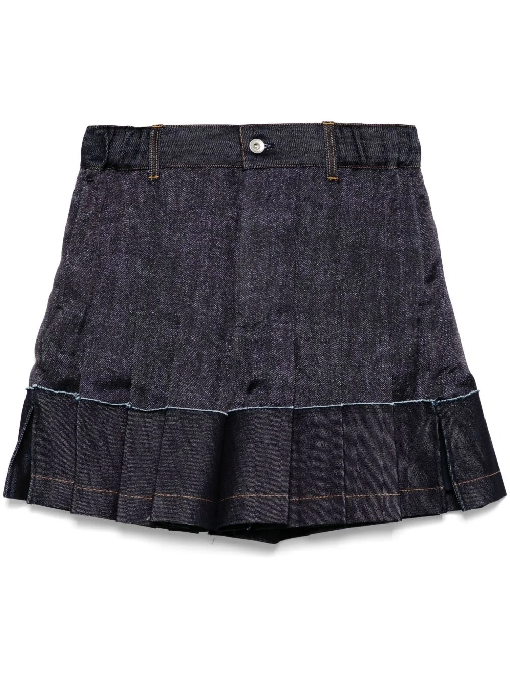 denim mix skorts Highlights - Indigo blue - Front button and zip fastening - Belt loops - Two side inset pockets - Two rear patch pockets Imported Composition Outer: Polyester 100% Lining: Cupro 100% SIZE & FIT Model measurements Height 5 ft 11 in(1.8 m) Bust/Chest 32.67 in(83 cm) Hips 36.22 in(92 cm) Waist 24.4 in(62 cm) FittingInformation Designed for a loose fit with a close-fitting internal layer The partially elasticated waistband offers increased movement and comfort at the waist Made from a midweight non-stretch fabric Washing instructions Dry Clean Only