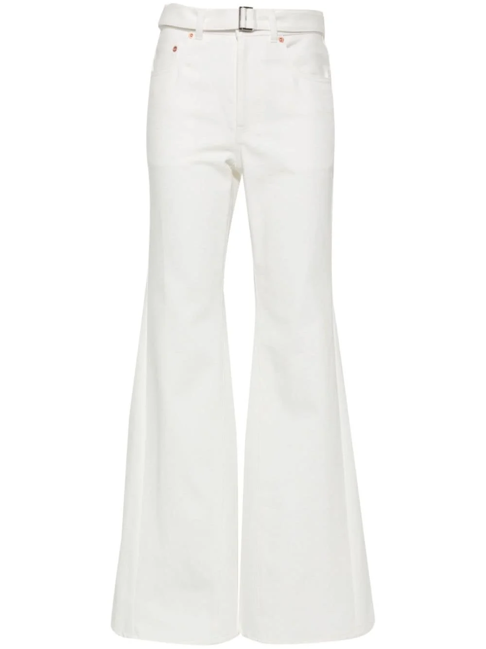 mid-rise flared jeans Highlights - White - Cotton - Denim - Tonal stitching - Seam detailing - Mid-rise - Belt loops - Belted waist - Classic five pockets - Flared - Concealed fly and button fastening Imported Composition Cotton 100% SIZE & FIT Model measurements Height 5 ft 11 in(1.8 m) Bust/Chest 31.49 in(80 cm) Hips 36.22 in(92 cm) Waist 25.59 in(65 cm) FittingInformation Designed with a flared hem, these jeans allow for a close fit at the waist with a slim fit over the leg and widening towards the hem The belt offers adjustability for fitted preferences Sturdy and hard-wearing, this denim piece offers no stretch