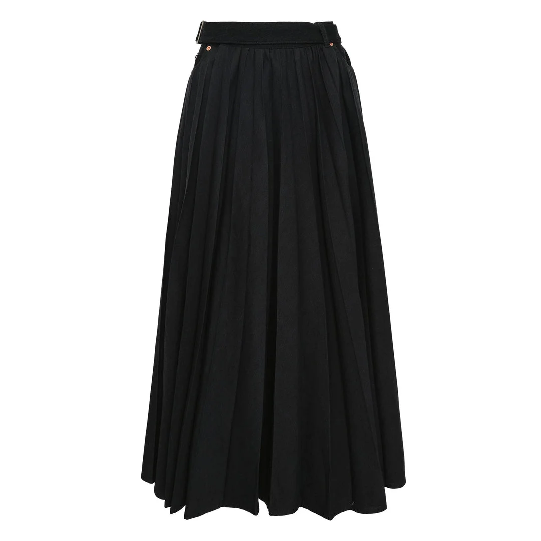 The sacai Denim Skirt delivers avant-garde femininity with the brand's signature reconstructed aesthetic. Crafted from premium black denim with pleated fabric panels, featuring an innovative hybrid construction that blends structured tailoring with flowing movement. The contrasting textures and deconstructed silhouette showcase sacai's mastery of material fusion and architectural design.