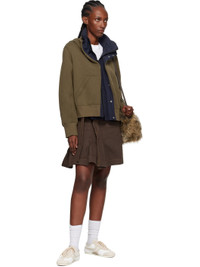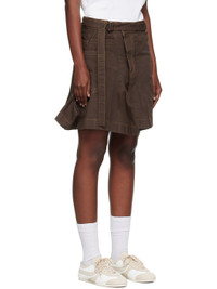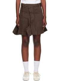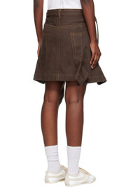 Non-stretch denim miniskirt. · Cinch belt at belt loops · Three-pocket styling · Offset zip-fly · Asymmetrical hem · Contrast stitching in tan Supplier color: Brown 100% cotton. Made in Japan 252445F090002