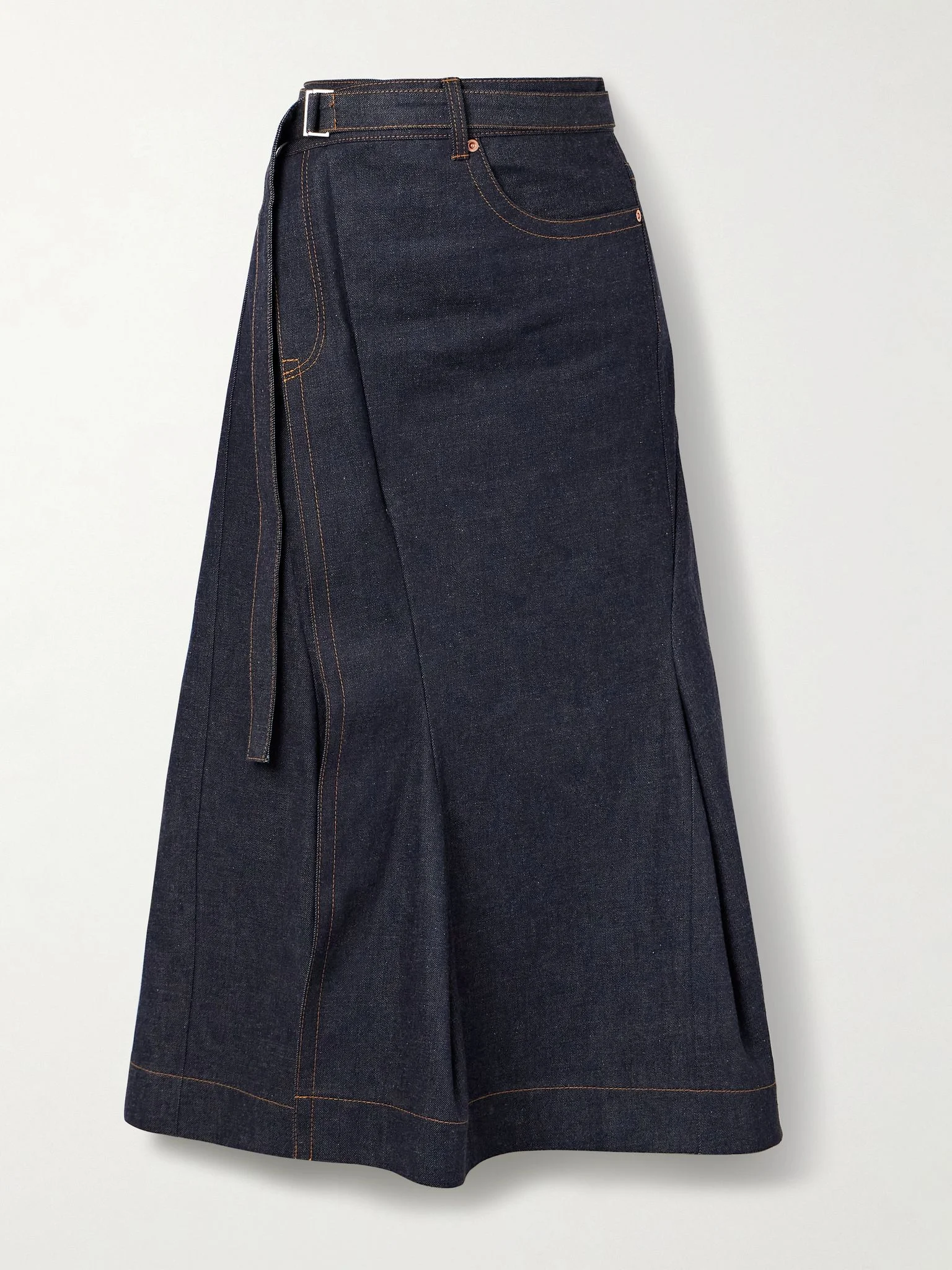 Belted denim midi skirt Indigo