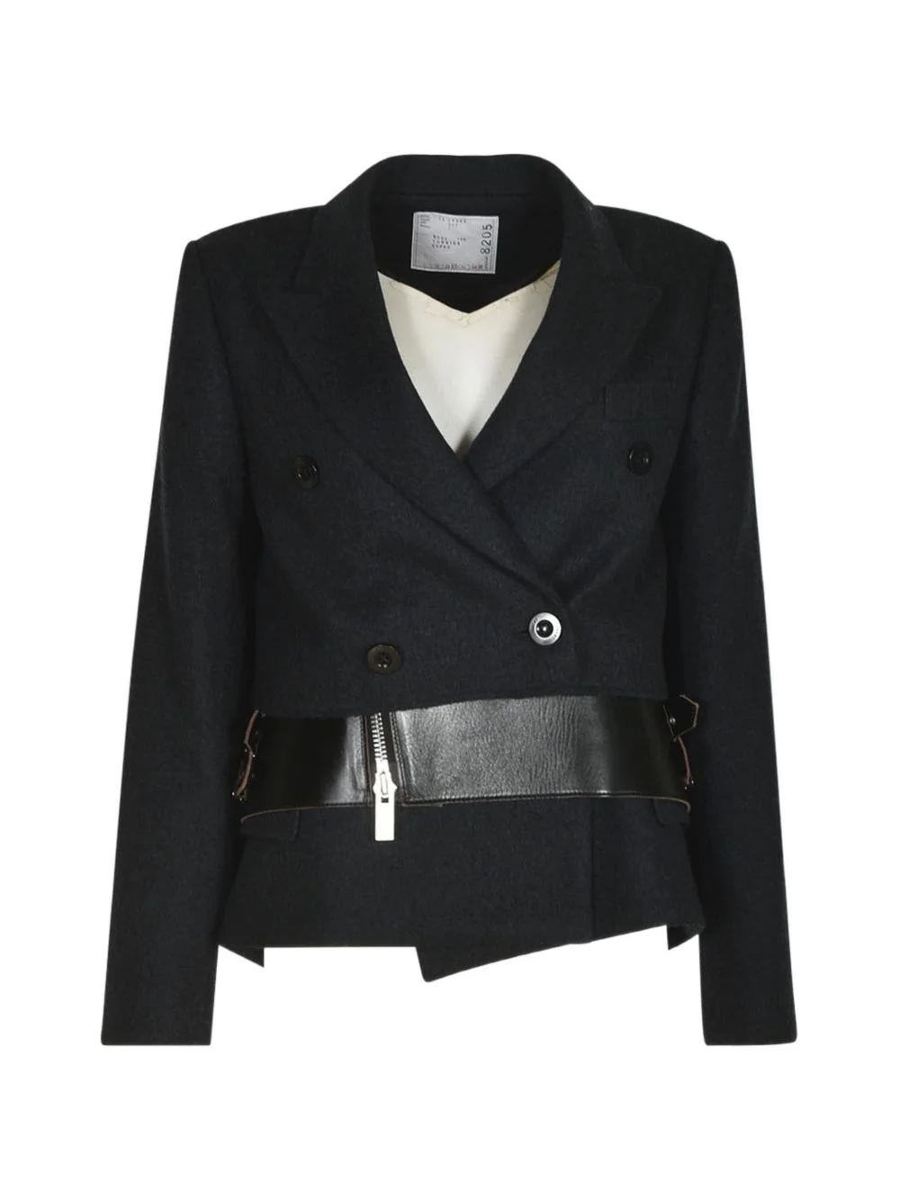 double-breasted belted blazer Highlights - Black - Double-breasted - Peaked lapels - Button fastening - Long sleeves - Incorporated belt Imported Composition Wool 100% Washing instructions Read Manufacturer Guidelines
