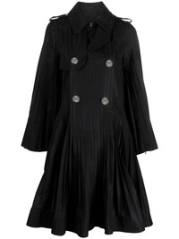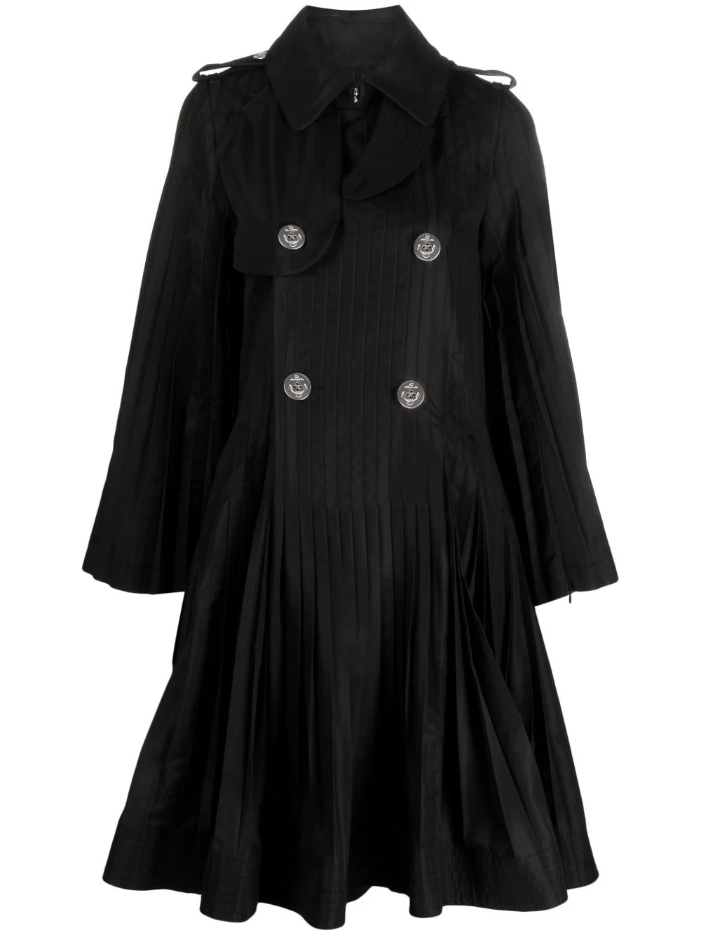 double-breasted peplum coat Japan-based sacai showcases its experimental design approach with this coat. Borrowing details from trench styles, it features epaulettes and a storm flap as well as a double-breasted button fastening. The peplum hem is typically seen on dresses. Highlights - Black - Cotton blend/calf leather - Pintuck detailing - Epaulettes - Hook and eye fastening - Storm flap - Double-breasted button fastening - Peplum hem Imported Composition Calf Leather 100%, Cotton 65%, Polyester 35% SIZE & FIT Model measurements Height 5 ft 10 in(1.79 m) Bust/Chest 31.49 in(80 cm) Hips 35.03 in(89 cm) Waist 23.62 in(60 cm) FittingInformation Designed for a close fit at the chest and waist with a loose fit at the hip Made from a heavyweight non-stretch fabric This piece fits true to size – take your usual size Washing instructions Dry Clean Only
