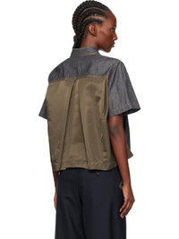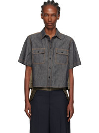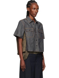 Non-stretch denim and nylon taffeta shirt. · Paneled construction · Fading throughout · Spread collar · Button closure · Flap pockets at chest · Shirttail hem · Vented side seams · Inverted box pleat and twin pleats at back yoke · Contrast stitching in tan Supplier color: IndigoxD/Khaki Body 1: 100% cotton. Body 2: 100% nylon. Made in Japan 252445F109003