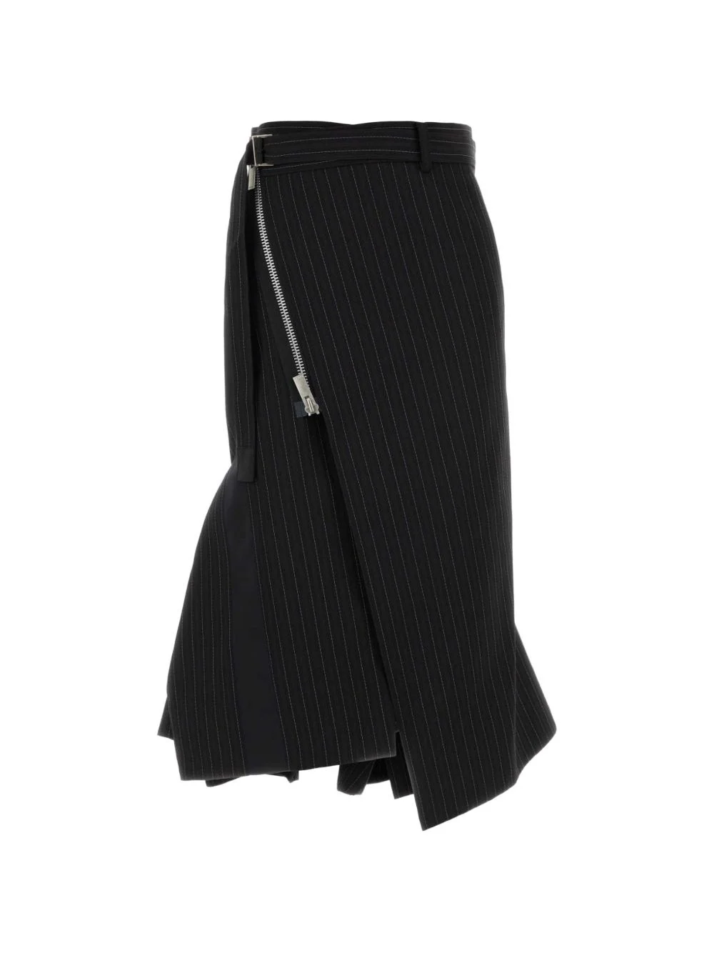 embroidered midi skirt Highlights - Black - Pinstripe pattern - Belt - Zip detail - Panelled construction - Asymmetrical hem Imported Composition Outer: Polyester 55%, Wool 45% Lining: Cupro 100% Washing instructions Read Manufacturer Guidelines