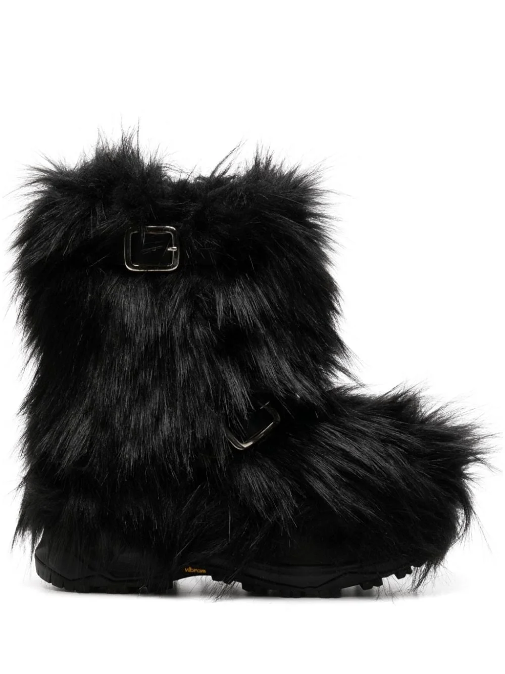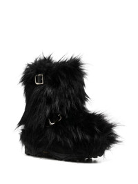 faux-fur boots Highlights - Black - Faux-fur design - Buckle-strap fastening - Round toe - Ankle-length - Branded insole - Eva midsole - Vibram® sole - Pull-on style - This piece comes complete with a protective dust bag. Imported Composition Sole: Rubber 100% Lining: Horse Leather 100% Outer: Acrylic 100% SIZE & FIT Measurement CIRCUMFERENCE 15.55 in(39.5 cm) HEIGHT 10.23 in(26 cm) Sole height 1.57 in(4 cm)