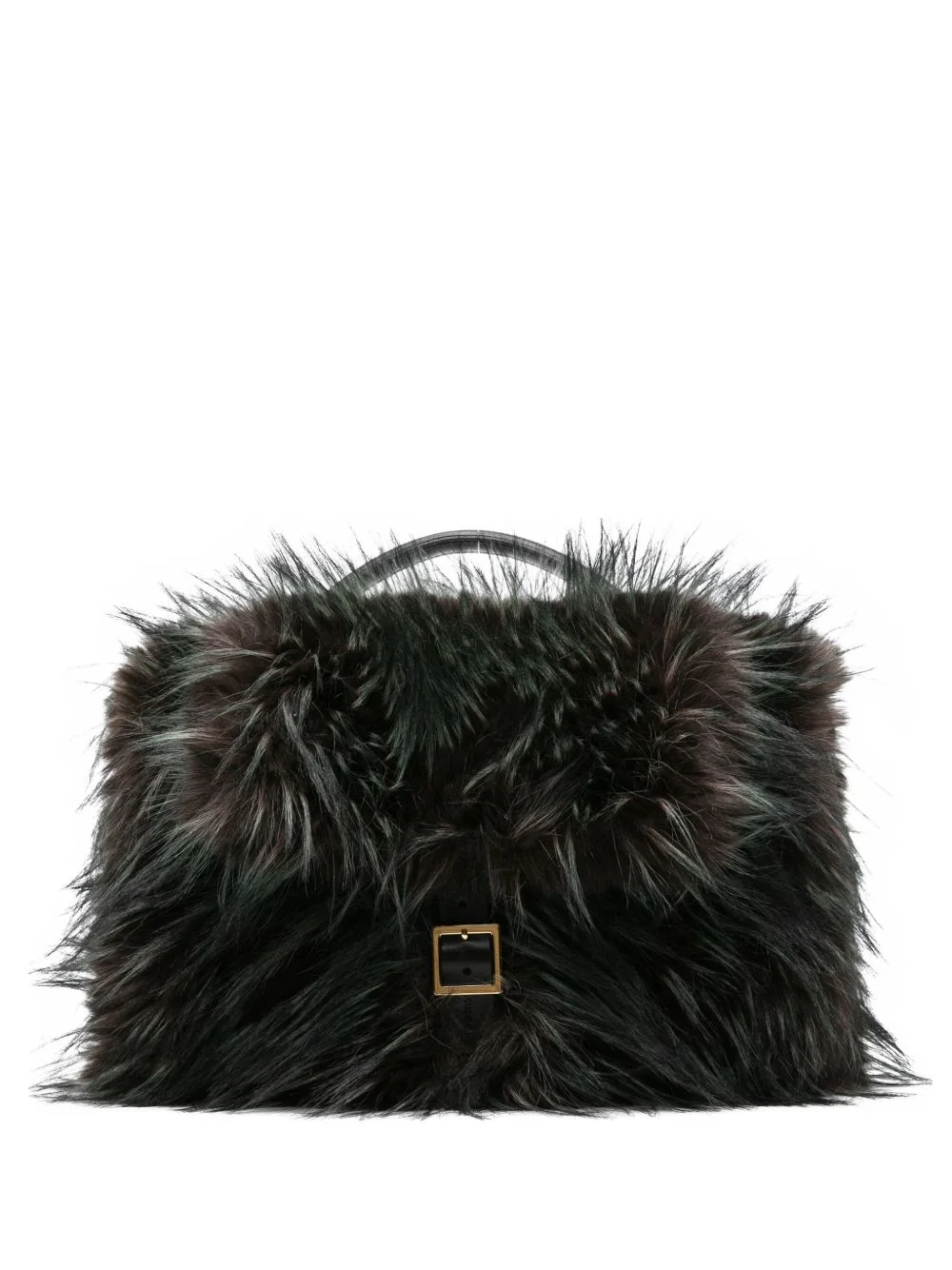 faux fur tote bag Highlights - Green - Faux fur - Single top handle - Foldover top with buckle fastening - Internal zip-fastening pocket Imported Composition Polyester 100%