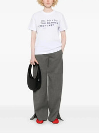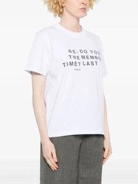 white crew neck short sleeves straight hem Size & Fit Model Measurements: Height: 1.75 m Bust/Chest: 86.0 cm Hips: 93.0 cm Waist: 66.0 cm Model wears size 1 Fabric and Care Designer Style ID: 250977S Designer Colour: 101 WHITE Composition: Cotton 100% Washing instructions: Machine Wash Made in Japan