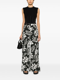 floral-print palazzo trousers Highlights - Black/white - All-over floral print - Detachable belt - Belt loops - Two side inset pockets - Two side flap pockets - Two rear button-fastening jetted pockets - Wide leg - Hook and zip fly fastening Imported Composition Outer: Polyester 100% Lining: Cupro 100% SIZE & FIT Model measurements Height 5 ft 9 in(1.76 m) Bust/Chest 31.88 in(81 cm) Hips 35.43 in(90 cm) Waist 24.8 in(63 cm) FittingInformation Designed with a wide-leg cut, these trousers allow for a close fit at the waist and offer a loose and roomy fit over the leg The belt offers adjustability for fitted preferences Made from a lightweight non-stretch fabric This piece fits true to size – take your usual size Measurement FRONT RISE 11.41 in(29 cm) INSIDE LEG 29.92 in(76 cm) HIPS 37.79 in(96 cm) WAIST 27.16 in(69 cm) Washing instructions Dry Clean Only