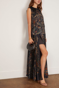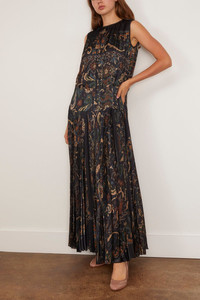 The Sacai Floral Print Dress is a standout piece from their PreFall 25 Collection. This midi dress features allover pleating with a drop waistline and floor grazing hemline in printed satin. Wear yours with boots and a shoulder bag. FIT DESCRIPTION MODEL MEASUREMENTS - Fits true to size, take your normal size - Ankle length - Allover pleating - Loose silhouette - Drop waistline - Jewel neckline - 100% polyester - Rayna is wearing a size 1/ XS - Bust: 34” - Waist: 24” - Hips: 32” - Height: 5’8.5”